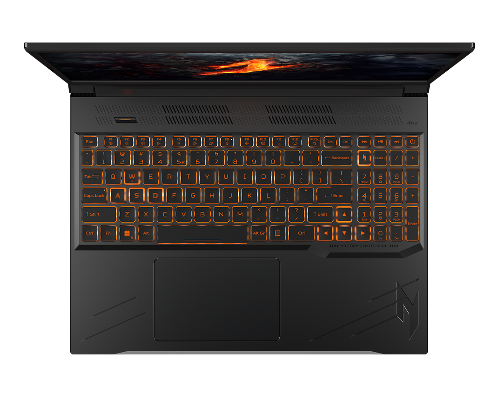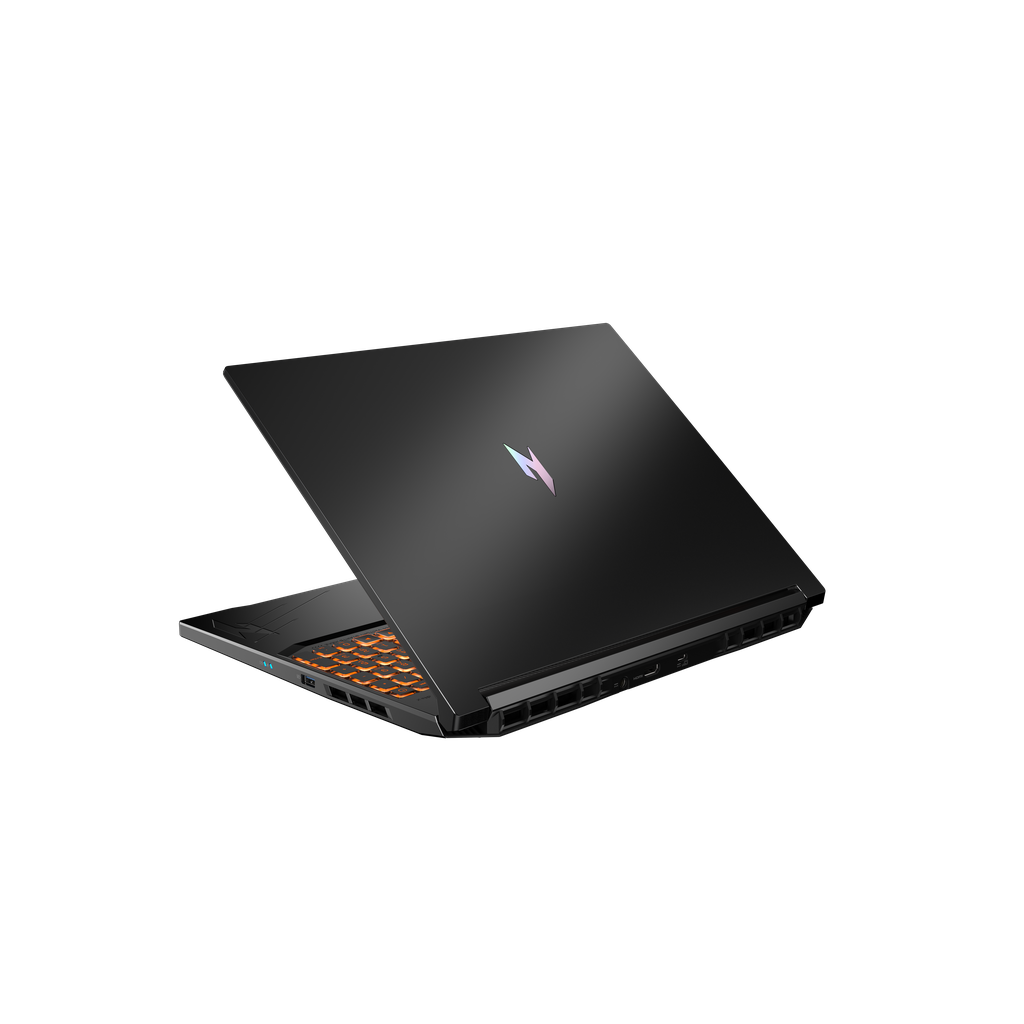 O novo Acer Nitro V 16 mantém uma linguagem visual similar à da série, mas conta com entalhes mais protuberantes na chapa próxima ao teclado. Por sinal, o modelo parece ter teclas com iluminação laranja, embora a fabricante não tenha detalhado se haverá outras opções de cores. Já na tampa, o estilo é totalmente liso, com o logotipo em um esquema de arco-íris.