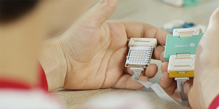 O Groove Junior é um conjunto de blocos eletrônicos magnéticos programáveis. Com ele, é possível iniciar as crianças em conceitos básicos de programação e eletrônica de uma forma leve e intuitiva.