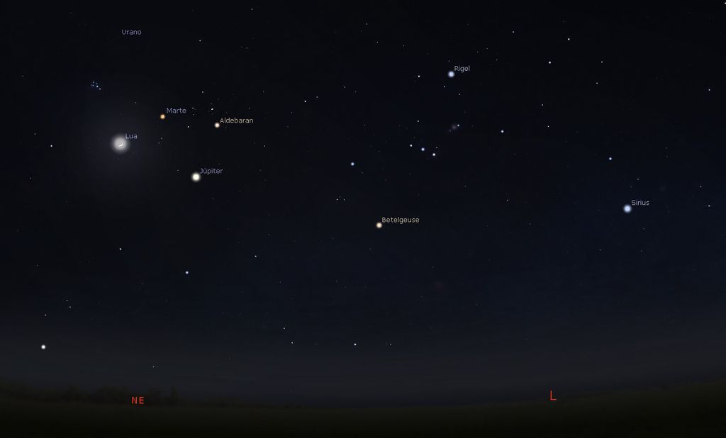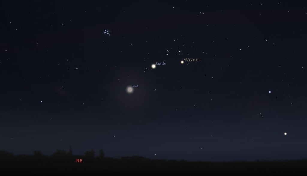 O mais legal é que os objetos estarão na constelação de Touro, o que significa a presença das Plêiades e de Aldebaran.