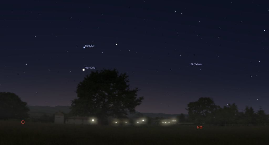 Após o sábado, o brilho do 13P/Olbers deve permanecer mais ou menos o mesmo até o fim do mês, mas sua posição no céu será cada vez mais acima do horizonte — isso o tornará mais fácil de observar.