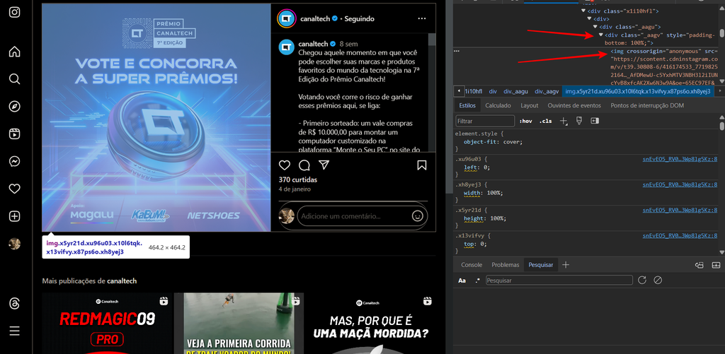 Existem um modo que permite fazer download de fotos do Instagram pelo navegador — o que dispensa o uso de ferramentas de terceiros. Apesar dessa facilidade, é preciso “fuçar” os códigos da página ao abrir o modo de desenvolvedor na versão web da rede social.