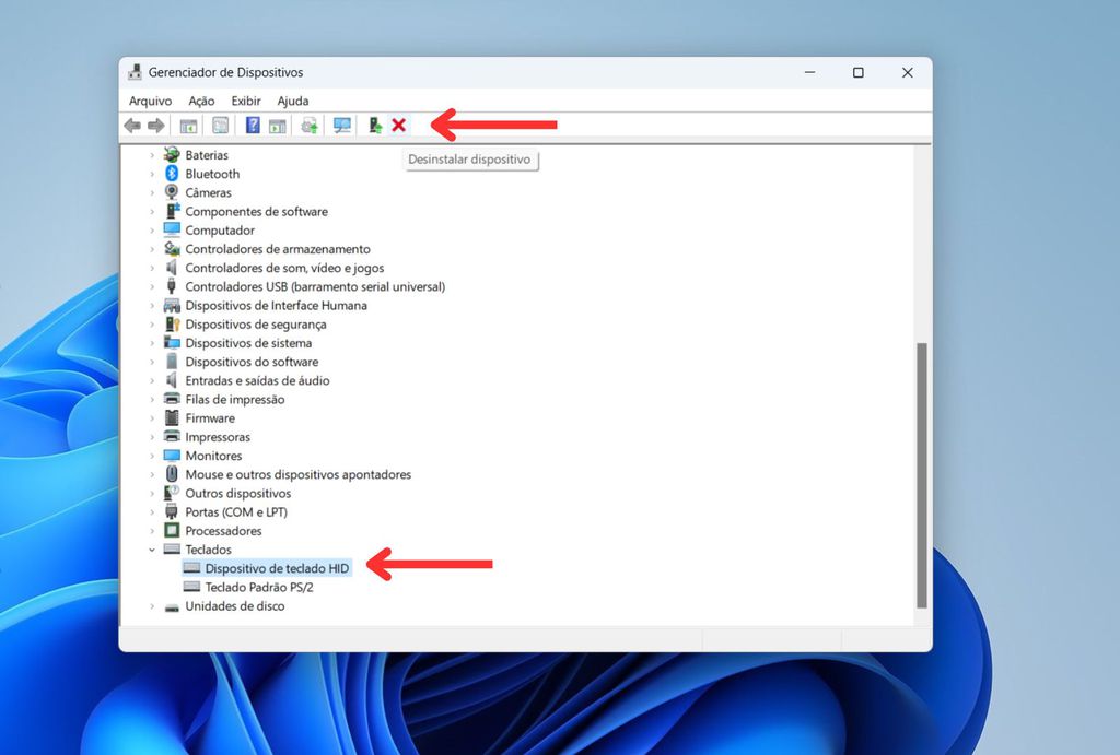 - Localize o teclado conectado;