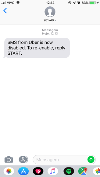Cancelando o recebimento de SMS do Uber Eats