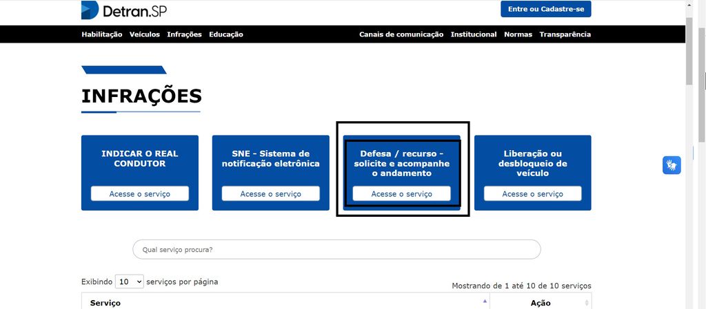 - Clique em “Defesa / recurso – solicite e acompanhe o andamento”;