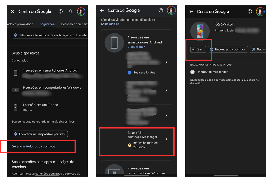 Caso você tenha cadastrado uma conta do Google num celular que foi formatado recentemente, é possível remover esse registro de forma remota a partir de outro aparelho confiável. A mudança garante que a sua conta fique conectada apenas em dispositivos que você usa com frequência.