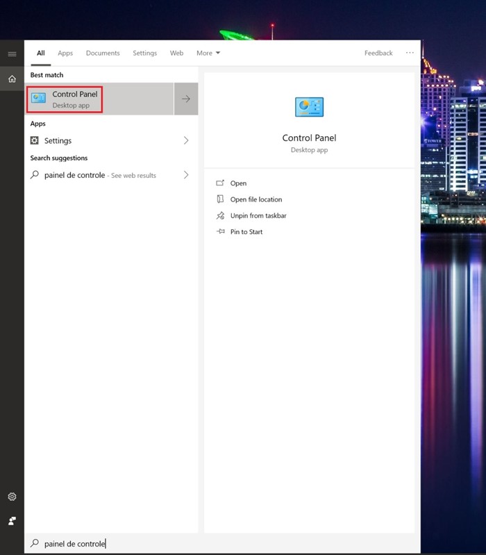 1. Clique no botão Iniciar, digite “painel de controle” e dê ENTER no teclado;