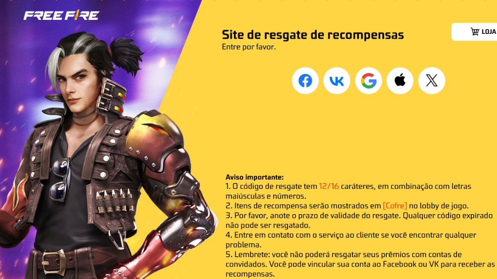 O processo é bem simples: basta acessar o site de recompensas da Garena e logar com sua conta. Depois disso é só digitar seu código e resgatar seu item.