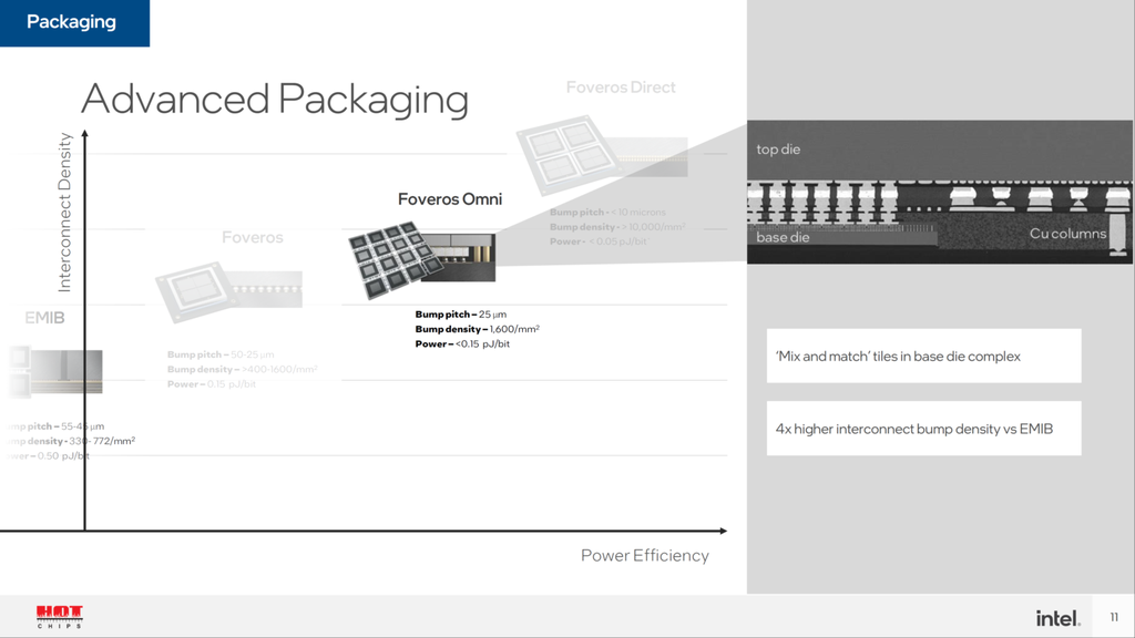 O interposer no Foveros Omni deve ser desagregado em vários pedaços, assim como as partes dos chips (Imagem: Divulgação/Intel)