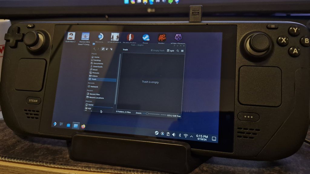 Salvo por esses casos extremamente pontuais, toda a experiência do Steam Deck é dentro do Big Picture, com atalhos utilizando os botões Steam e Menu (…). Além disso, todos os jogos que rodarem no Steam Deck, mesmo que acusem não ter suporte oficial, como Guild Wars 2, já reconhecem automaticamente o mapeamento de controles, buscando o mais votado pela comunidade na falta de um layout oficial.